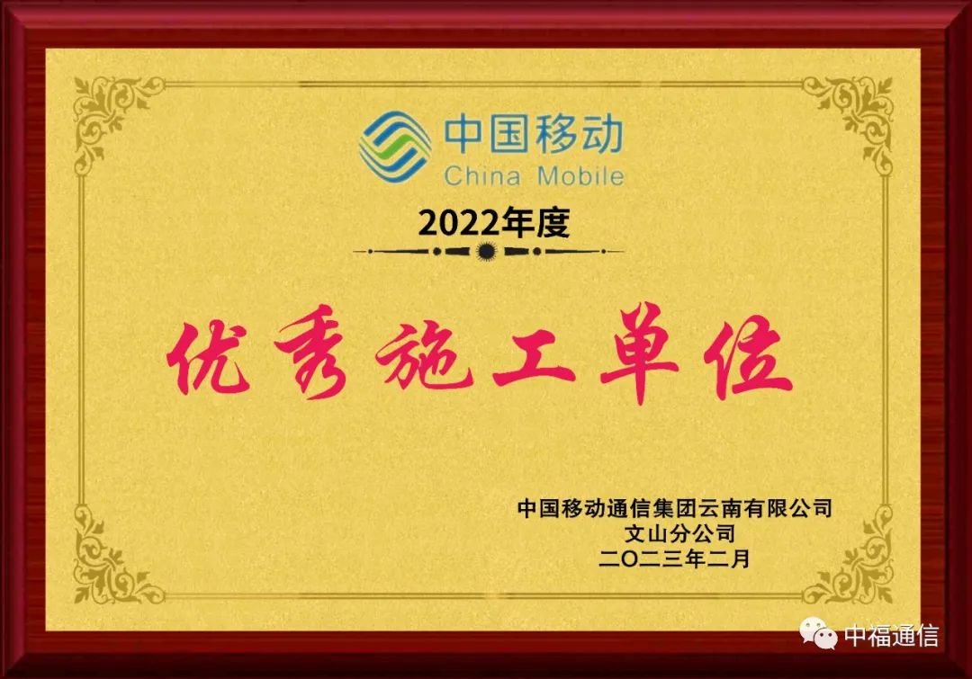 近日,北京中福通信工程有限公司云南分公司在文山地區(qū)移動通信工程中項目建設(shè)中,榮獲中國移動通信集團云南有限公司文山分公司頒發(fā)的“2022年度優(yōu)秀施工單位”榮譽稱號。