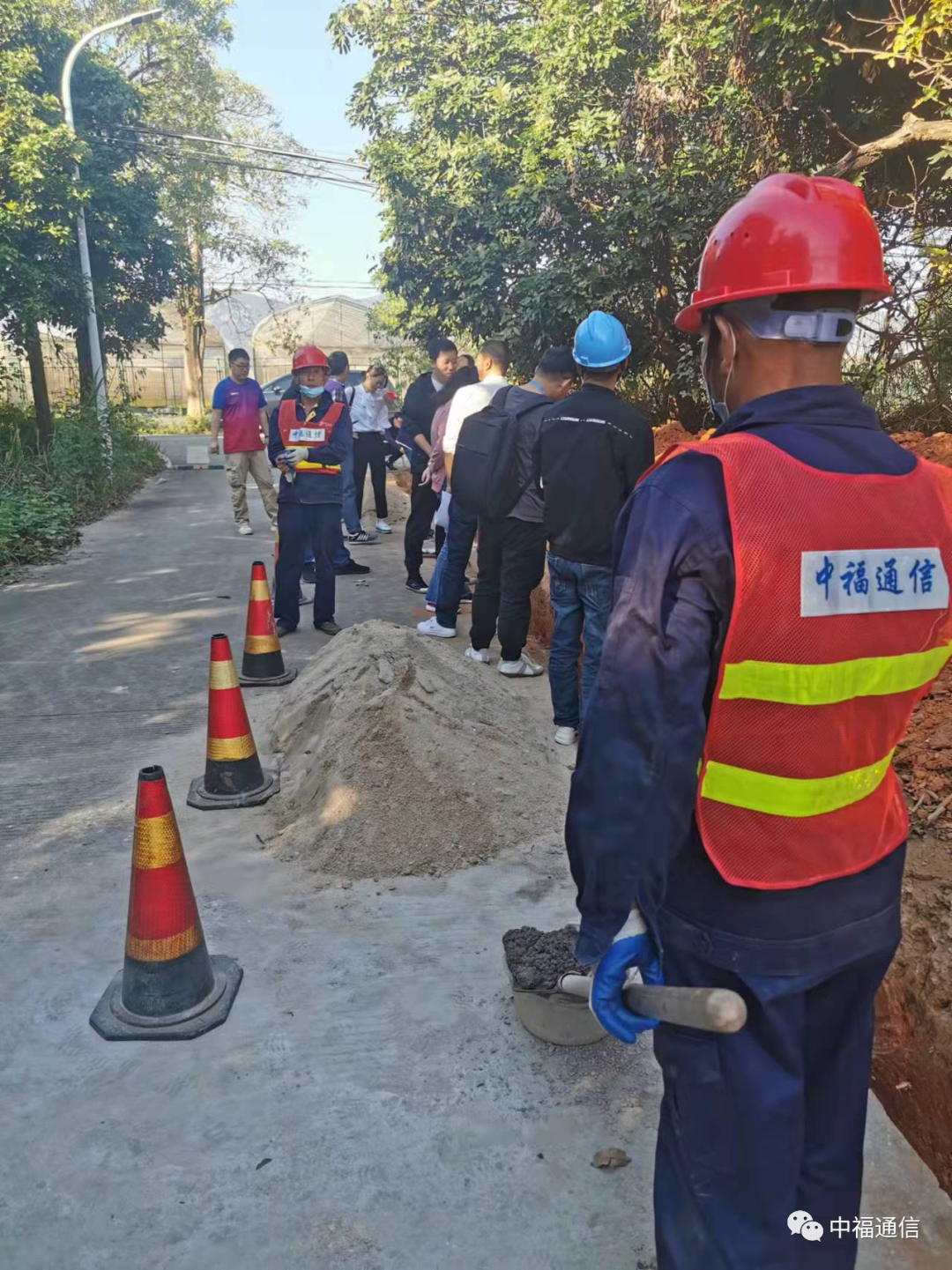 以上圖片為:與會人員觀摩廈門項目部林煊班組承建的移動通信隱蔽工程施工現(xiàn)場